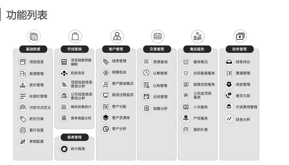 移动端录入客户数据,提升效率;经理助力盘客,提升沟通效率;系统提醒跟进客户,提高成交率;实时房源销控,防止一房多卖;数据实时同步,防止客户内导外。