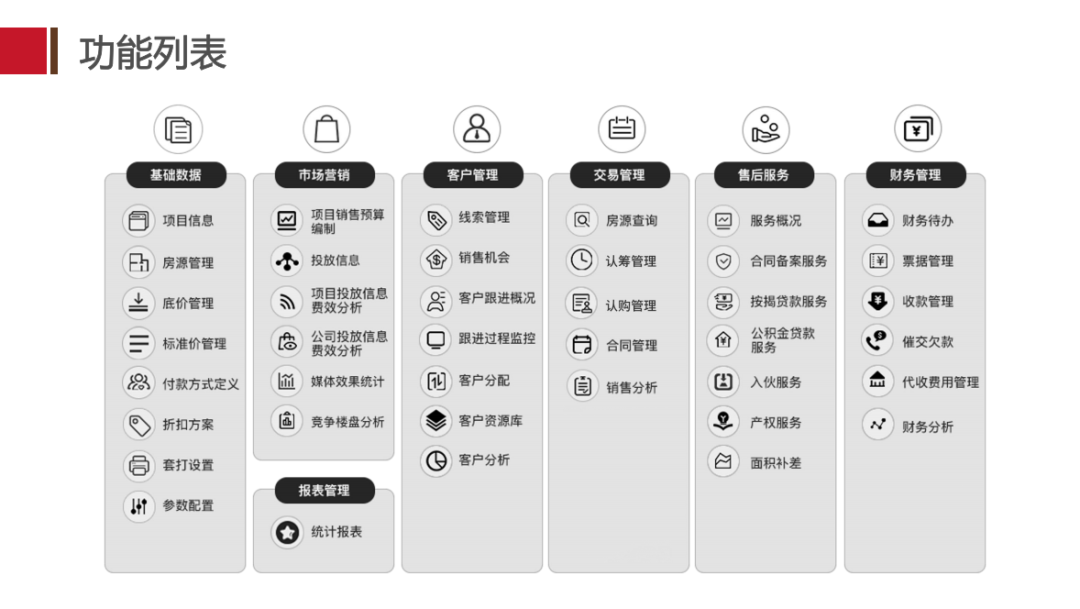 实时管理客户,提高工作效率 手机移动端录入客户数据,高效便捷;精准盘客,提升沟通效率;系统提醒跟进,规范销售节奏;实时房源销控,防止一房多卖;便捷抽查,制定规则,防止客户内导外。